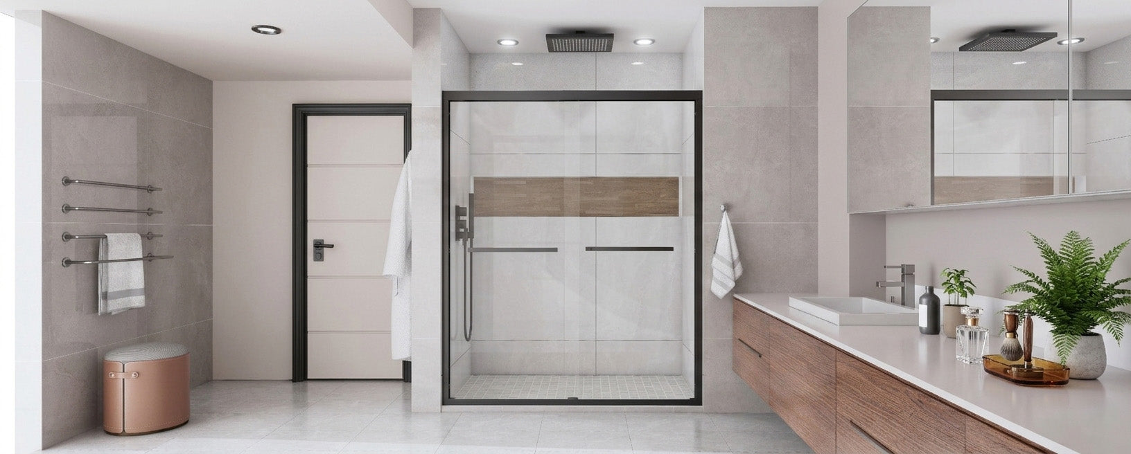 44–48" W x 72" H Framed Sliding Shower Door with Fixed Panel, Matte Black, Nano-Coated Tempered Glass