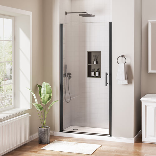 30–31 In. W x 72 In. H Frameless Pivot Swing Shower Door with Matte Black Frame and Nano-Coated Clear Tempered Glass